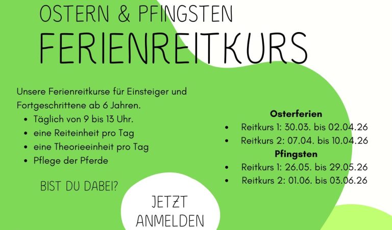 Die schönste Möglichkeit, die Ferien zu nutzen: ein Ferienreitkurs! In den Osterferien habt ihr wieder die Möglichkeit dazu.